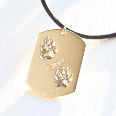 Echte 3D Hundepfote Gold Kette graviert